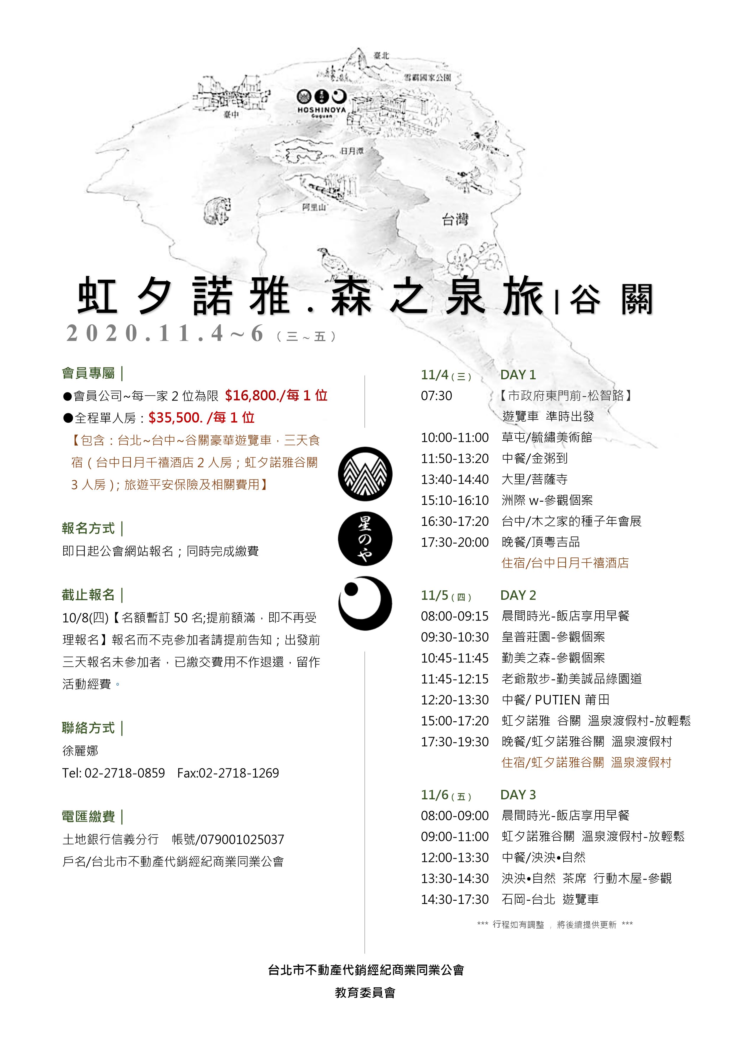 (已額滿) 11/4~6 「虹夕諾雅 森之泉旅~谷關」活動,隆重登場~
