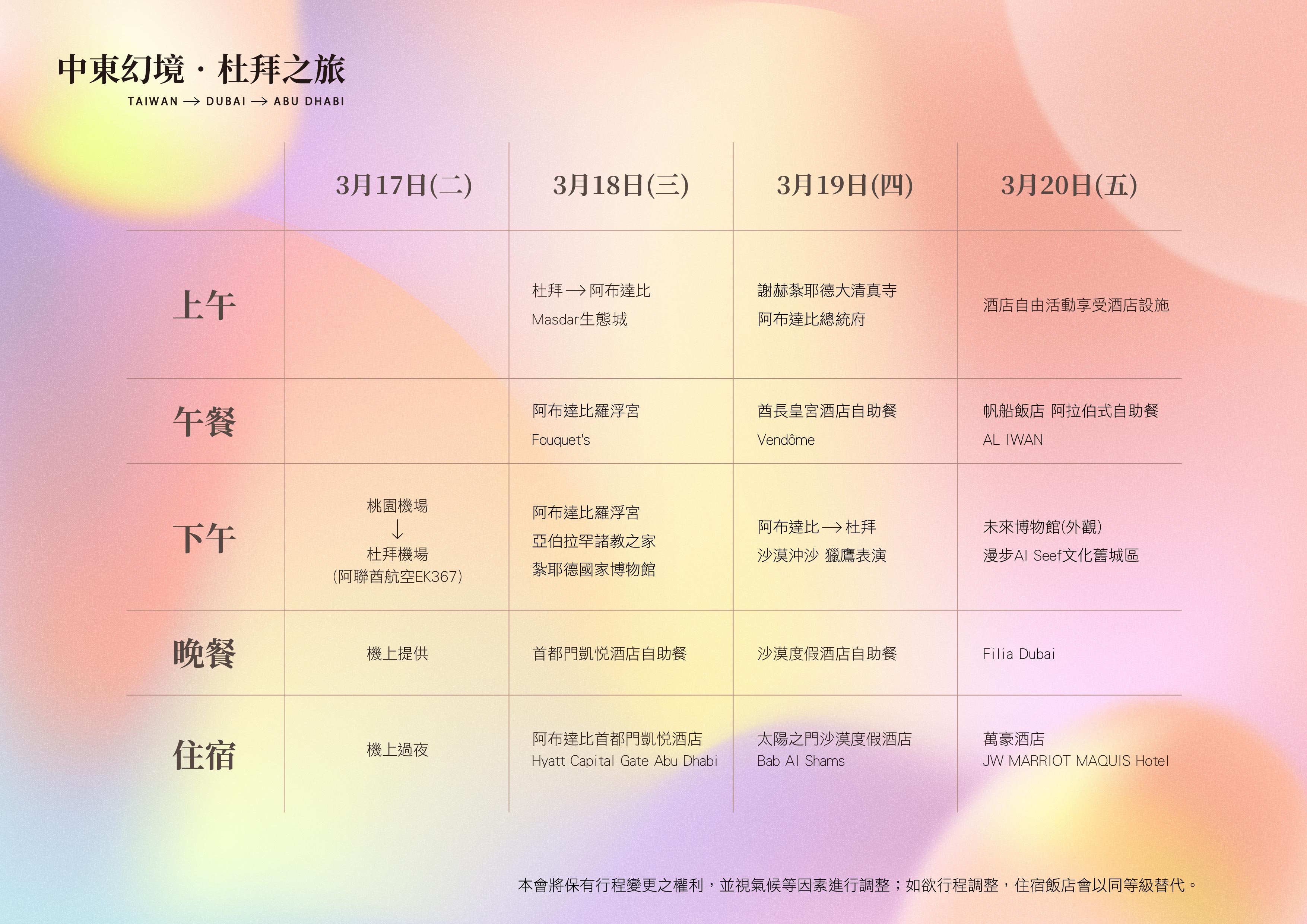 額滿!開始接受候補報名囉~|3月17日 - 24日 》中東幻境・杜拜之旅