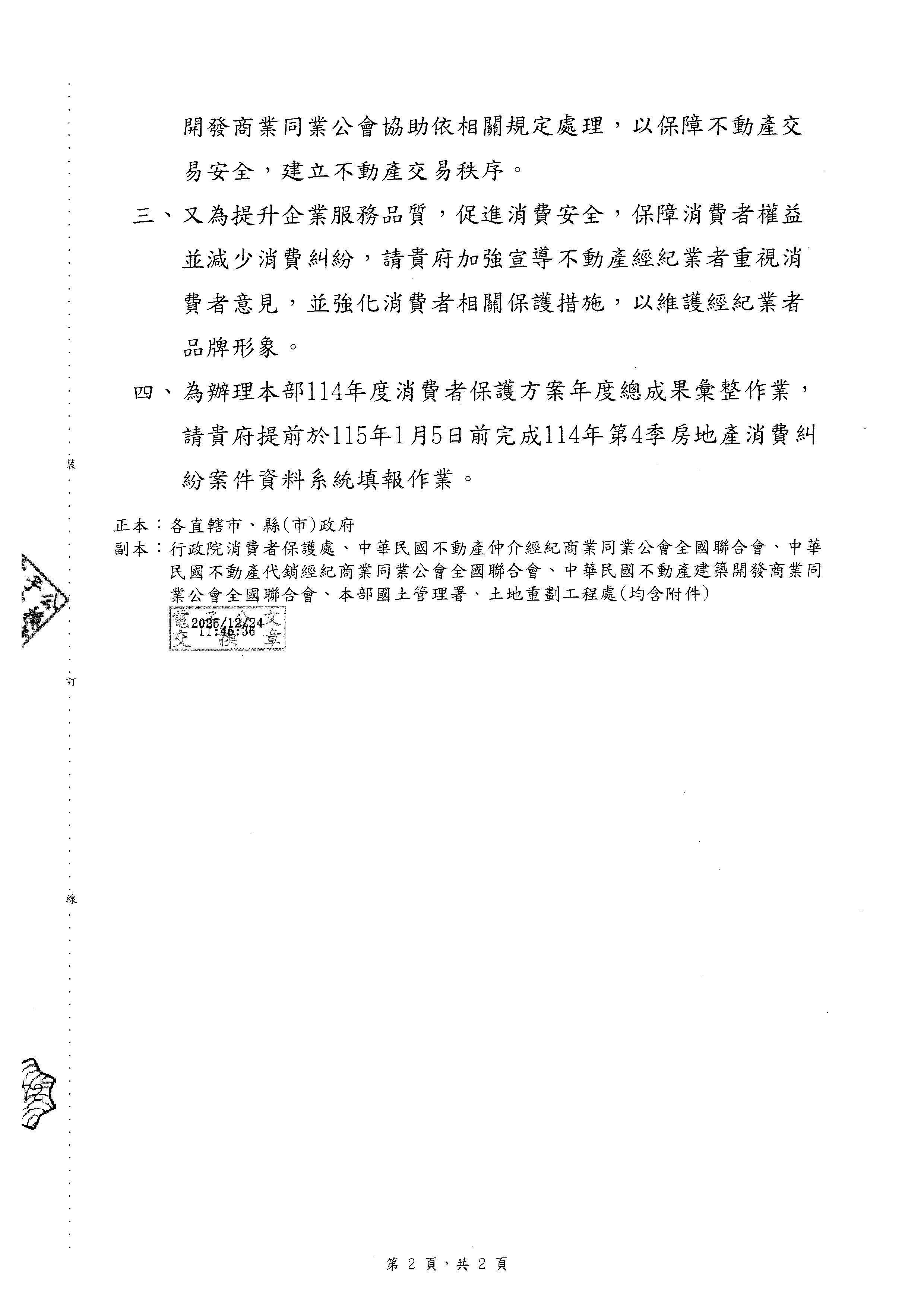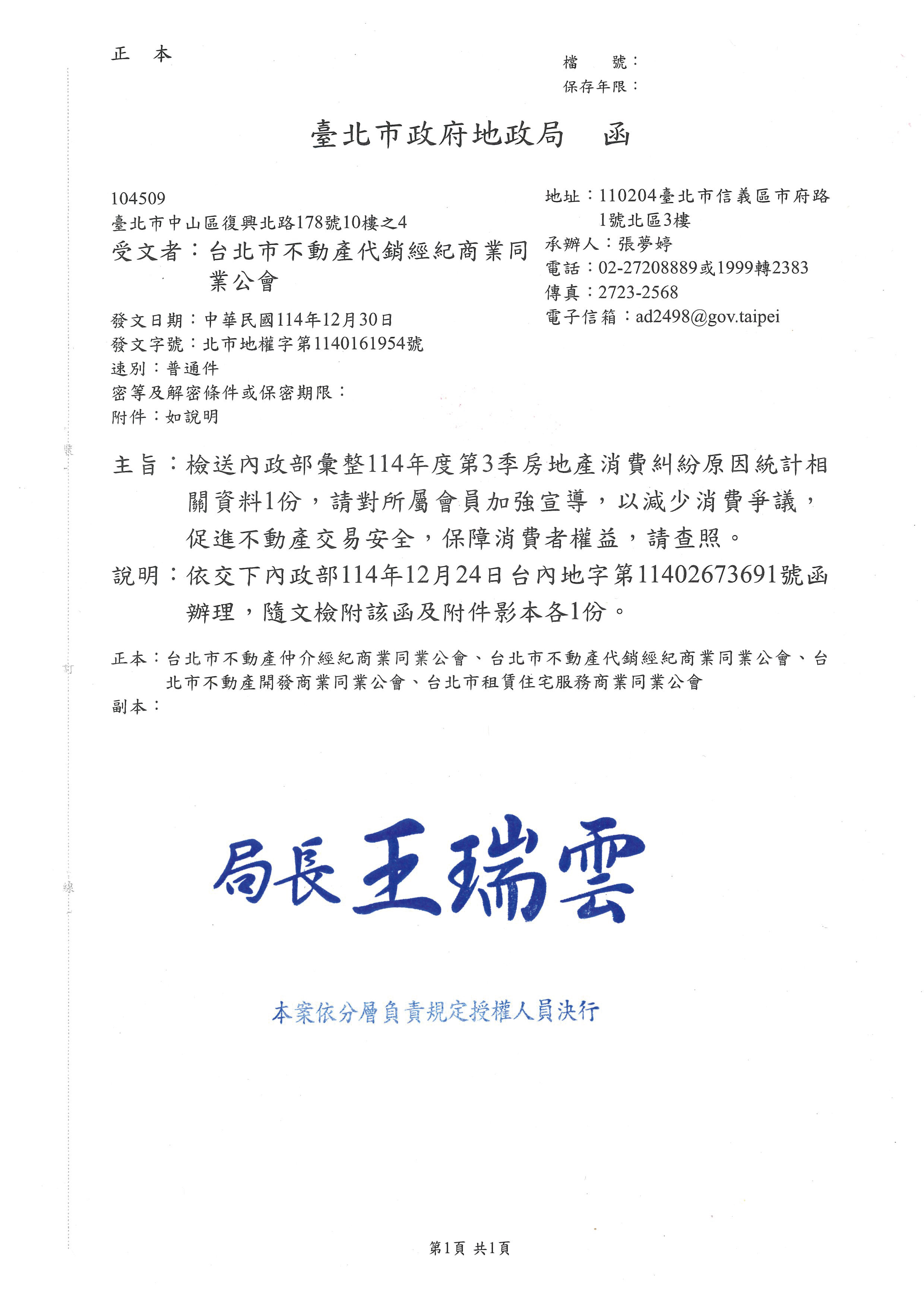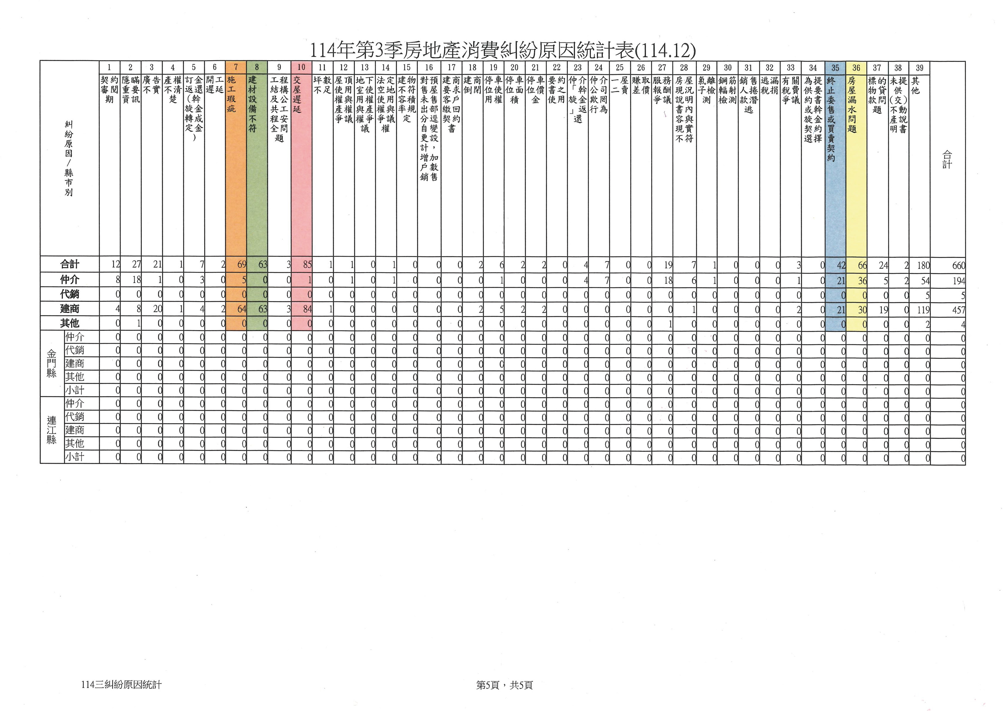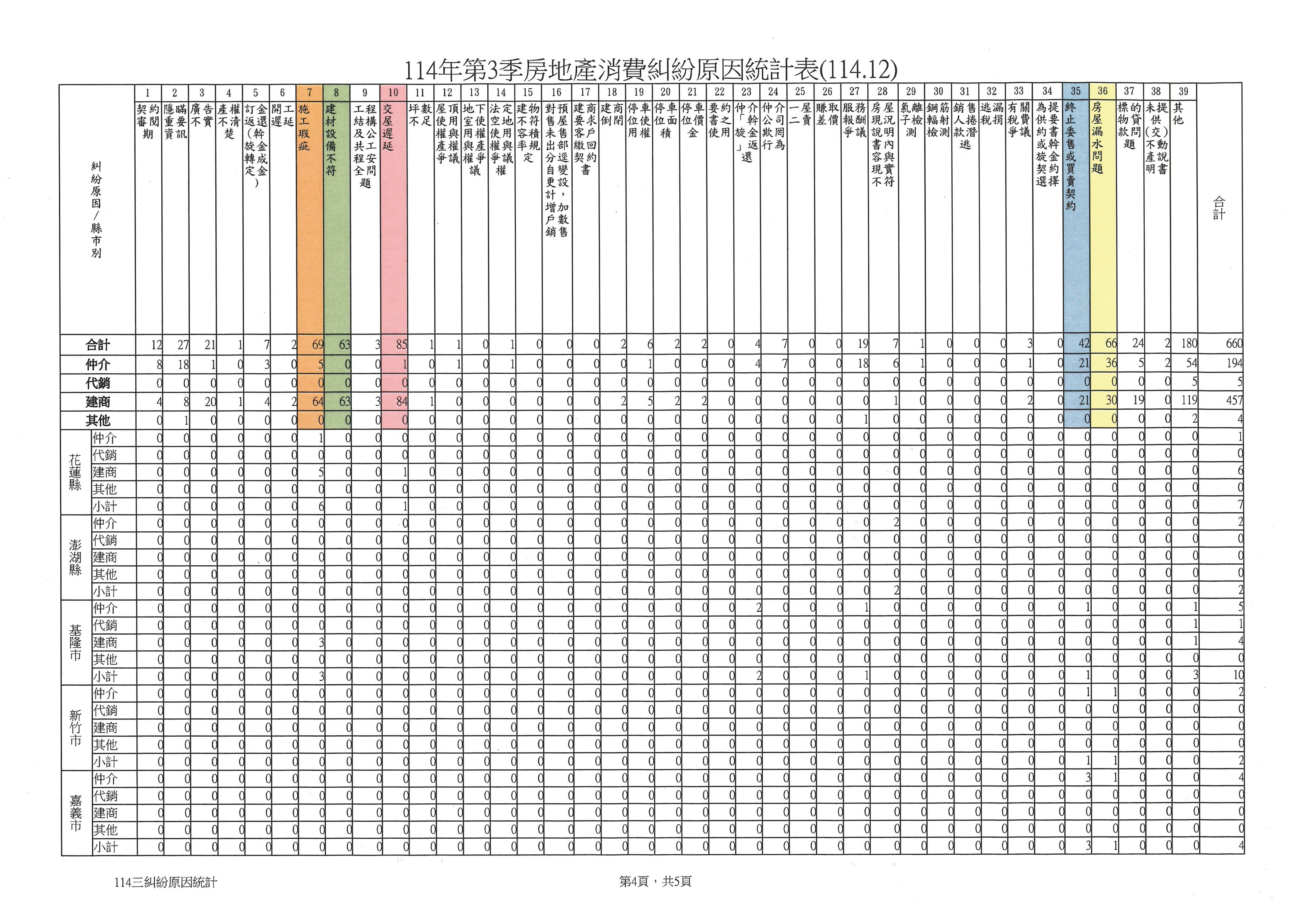 內政部彙整「114年第3季房地產消費糾紛統計」