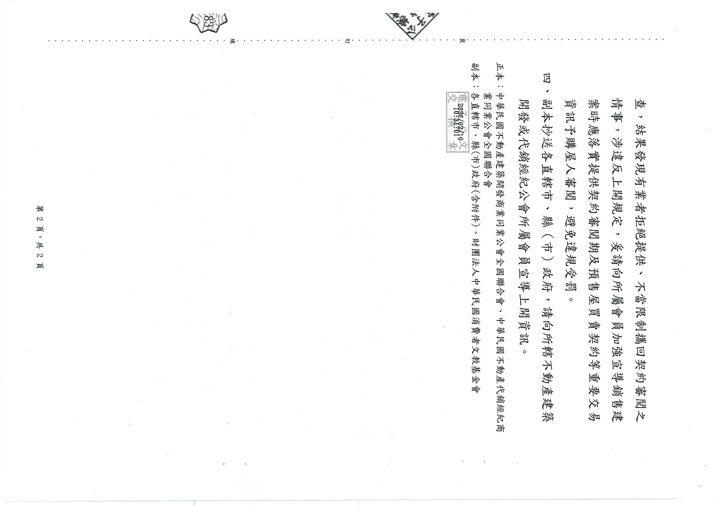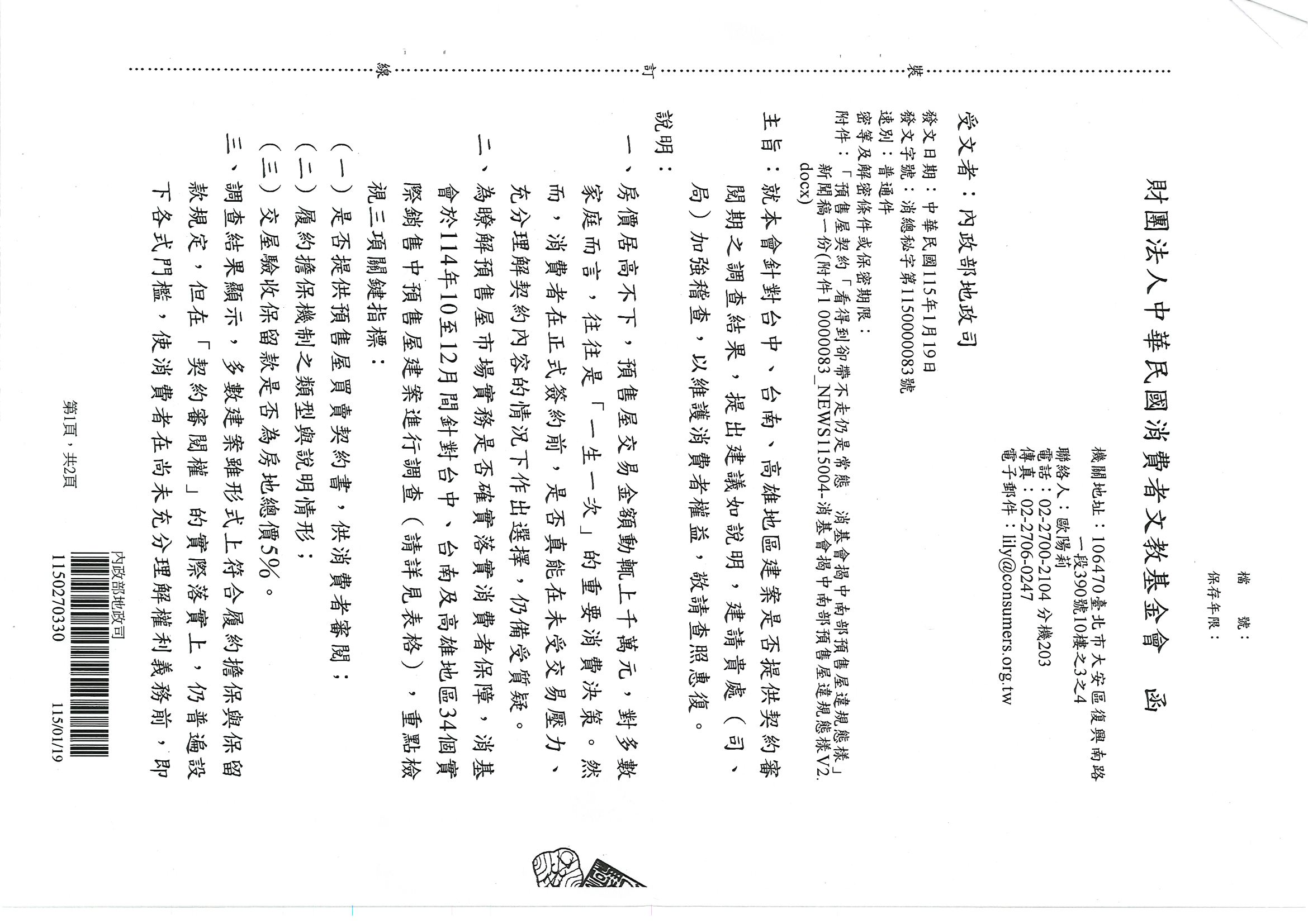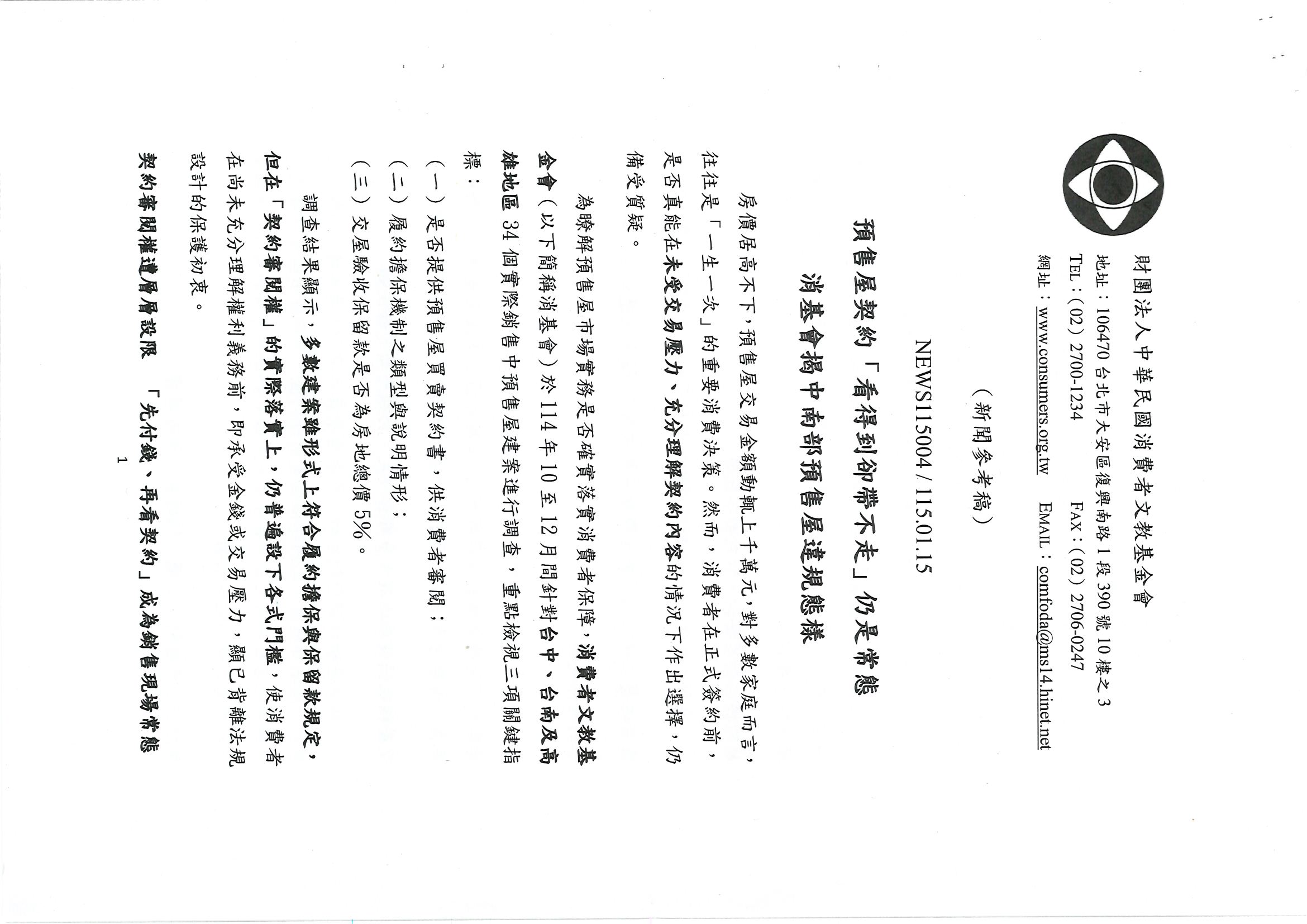 財團法人中華民國消費者文教基金會近期針對台中、台南及高雄地區建案, 是否提供契約審閱期之調查結果,提出「預售屋契約『看得到卻帶不走』仍是常態— 消基會揭中南部預售屋違規態樣」,務請各會員公司詳實檢視參考,切勿觸法遭罰˙